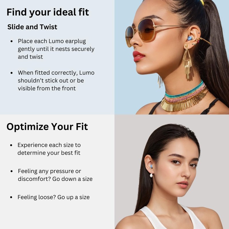 - EVERYDAY PROTECTION: Experience superior noise reduction whether you're sleeping through city noise, enjoying live music at concerts, focusing at work or traveling on noisy flights. Lumo's ergonomic design ensures comfort in every setting while protecting your hearing.