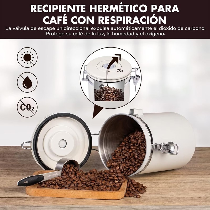 Fabricado en acero inoxidable de primera calidad, este recipiente conserva el sabor y el aroma del café durante más tiempo, garantizando que cada taza sea tan sabrosa como la primera.