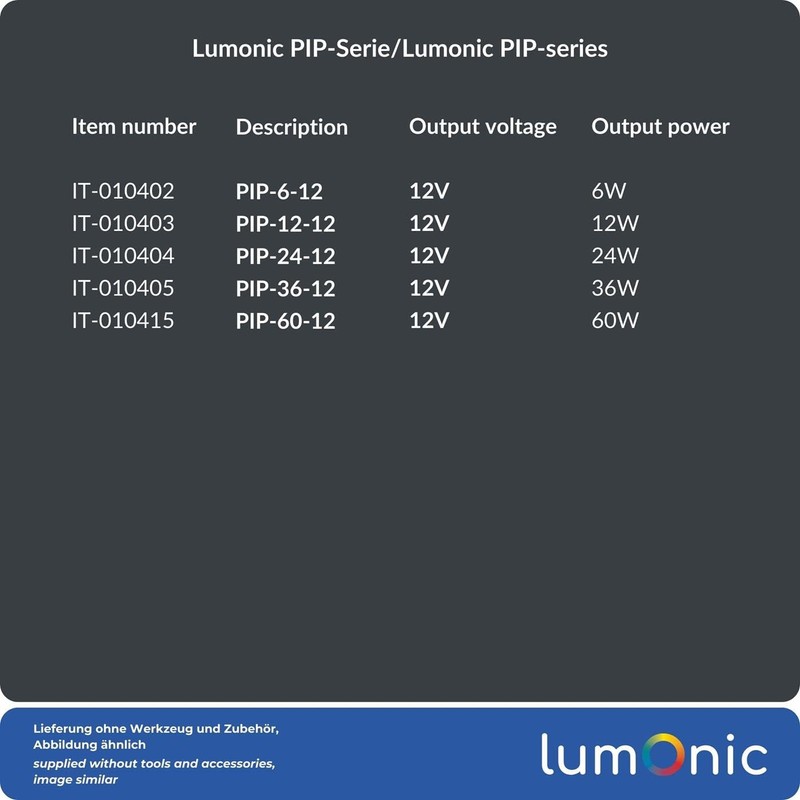 Lumonic I LED Plug Power Supply PIP-24-12 I 12V 24W I Input 100-240VAC I Extra Long Cable with Hollow Plug 5.5/2.1 I Overload Protection & Efficient I Unive
