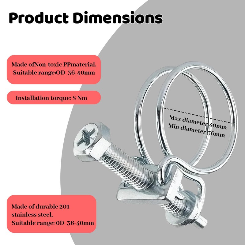 - Easy to install: The installation of these double wire hose clamps is child's play thanks to the adjustable bolt and requires no special tools. The rounded edges of each hose connection clamp and double clamp protect hoses and hands from damage. Perfect for quick repairs.