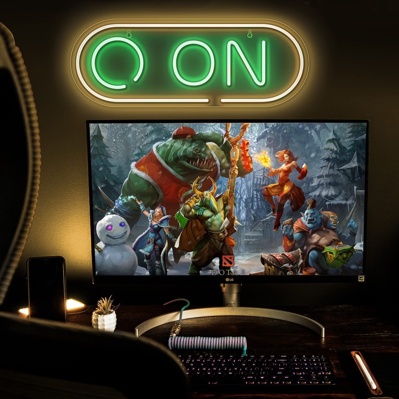 - Gamer/Streamer ON Neon Signs: If you’re grinding for your dream, you must have this ON neon light on your wall to remind yourself and your audience that you’re in the hustle/grind on mode. It’s a perfect addition to the background of streamers/gamers’s setup.