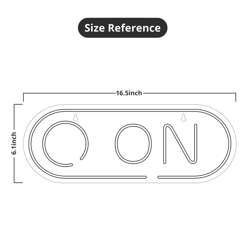 - Easy Installation: The ON LED Sign has two pre-drilled holes for easy hanging and features special adhesive strips that allow you to install it on any smooth, non-textured walls. The simple on/off switch is very easy to use so you don’t have to worry about complicated installations.