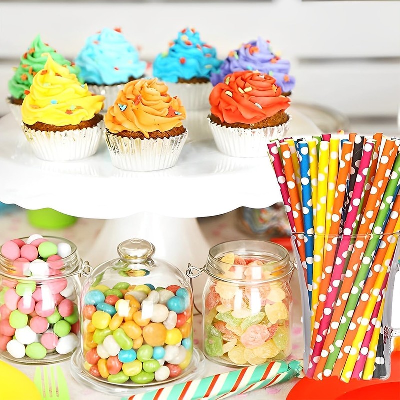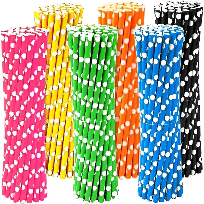 LUMOUS ROLA Paper Straws, 150 Pack Paper Drinking Straws, Bio Degradable Drinking Paper Straws Wedding Party, Party Straws, Restaurant, Juice Drinking Straws (150Pcs Mix Polka Dots)