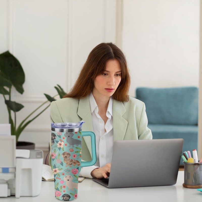 Lumumanber 40 oz Dachshund Tumbler with Handle and Straw, Dog Travel Mug Wate...