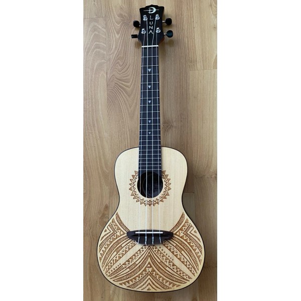 Luna Guitars Concert Solid Spruce Top Tapa Design Acoustic Electric Ukulele