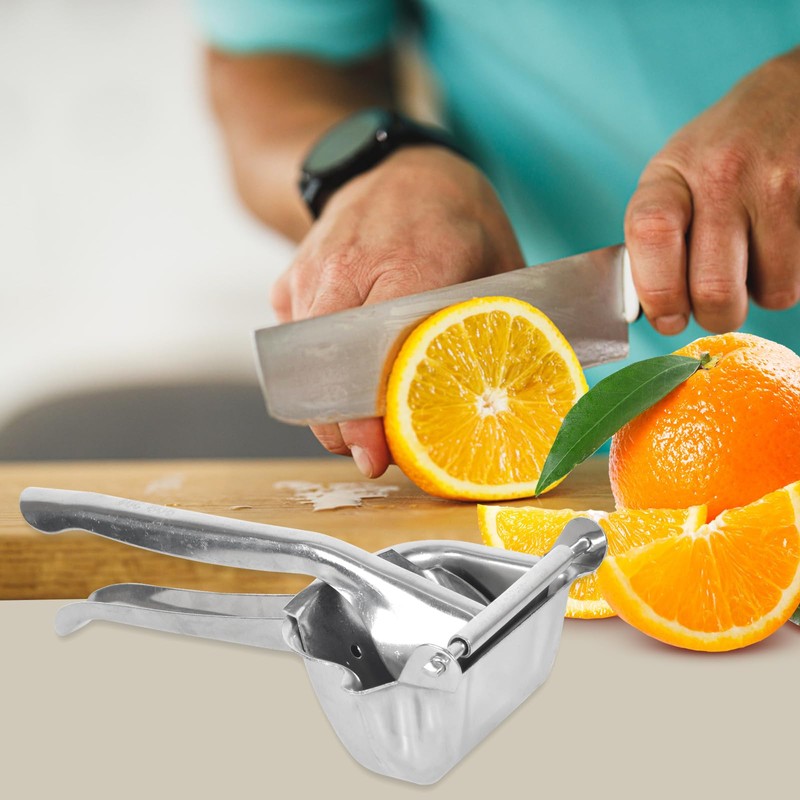 - COMFORTABLE HANDLING Thanks to its ergonomic handle design, our manual lemon squeezer provides a comfortable grip for effortless squeezing and allows for easy one-handed operation. Extracting fruit juice has never been so convenient.