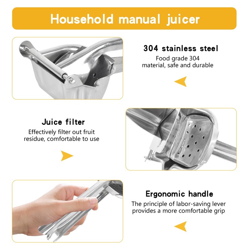 Made of high quality 304 stainless steel, this manual juicer ensures durability and corrosion resistance, making it a reliable addition to your kitchen equipment.