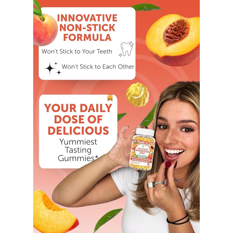 Naturally Flavored Gummies – Enjoy tasty peach-flavored calcium gummies with vitamin D3, made with natural flavors and absolutely no artificial colors.