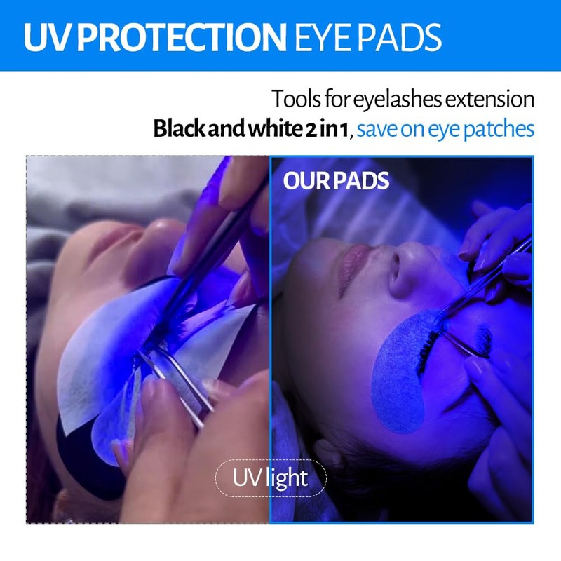 - This double layer UV eye pads for eyelash extension is the latest development from Lunamoon. Black eye pads for UV light insulation, white eye pads for work, black and white 2 in 1, save on eye pads