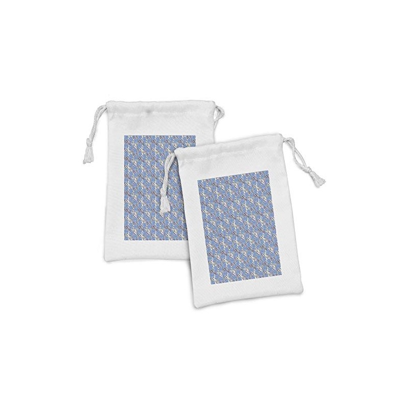 Lunarable Animal Print Fabric Pouch Set of 2, Romantic Roses on Tiger Skin Leather Geometrical Wavy Lines Background, Small Drawstring Bag for Toiletries Masks and Favors, 9" x 6", Blue Grey Black