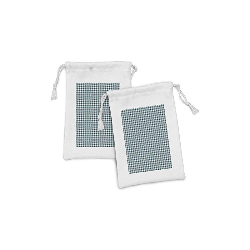 Lunarable Aqua and Grey Fabric Pouch Set of 2, Checkered Pattern with Diagonal Squares Rhombus Lattice, Small Drawstring Bag for Toiletries Masks and Favors, 9" x 6", Pale Grey Dark Grey