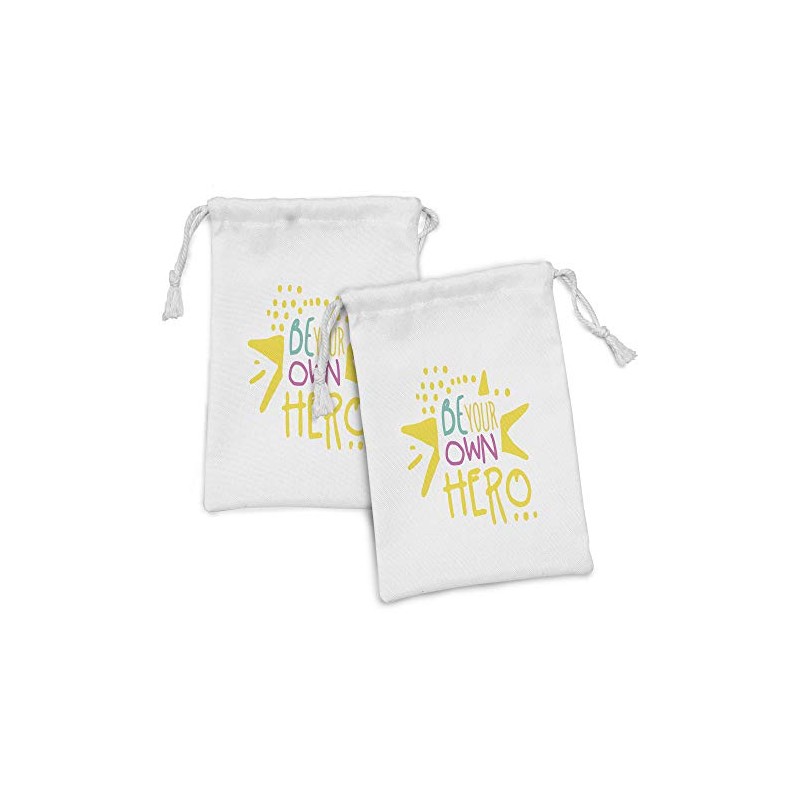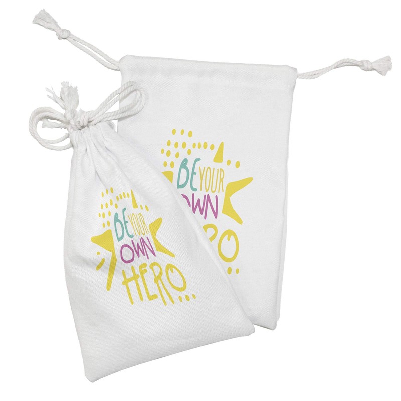 Lunarable Be Your Own Hero Fabric Pouch Set of 2, Hand Drawn Dots Message Positive Theme, Small Drawstring Bag for Toiletries Masks and Favors, 9" x 6", Dark Seafoam Pink