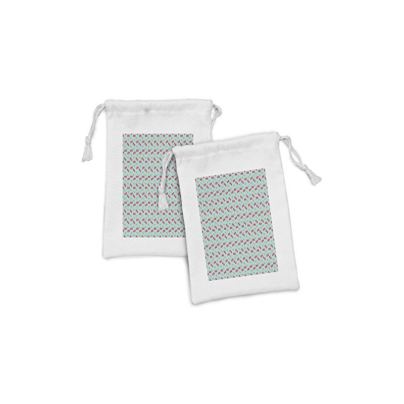 Lunarable Cherries Fabric Pouch Set of 2, Pattern with Red Cherry Leaves Freshly Picked, Small Drawstring Bag for Toiletries Masks and Favors, 9" x 6", Blue Dark Coral