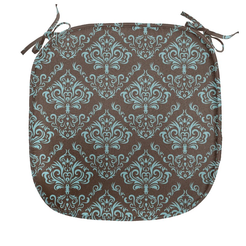 Lunarable Damask Chair Seating Cushion Set of 4, Retro Floral Ornaments in Geometrical Design Abstract Flourishes Pattern, Anti-Slip Seat Padding for Kitchen & Patio, 16"x16", Pale Blue and Brown