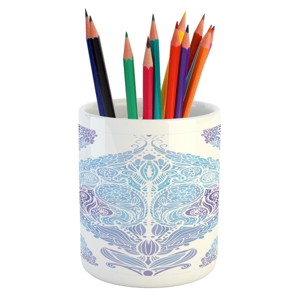 Lunarable Eastern Pencil Pen Holder, Traditional Paisley Motifs Pattern Floral Flourishing Ornament Tile Pattern, Printed Ceramic Pencil Pen Holder for Desk Office Accessory, Pale Blue Purple