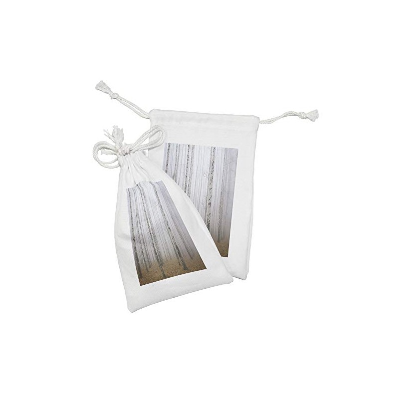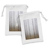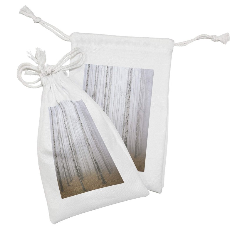 Lunarable Forest Fabric Pouch Set of 2, Morning Mist in Autumn Birch Grove Flora Calm Serene Simple Nature Picture, Small Drawstring Bag for Toiletries Masks and Favors, 9" x 6", Brown Grey Ivory