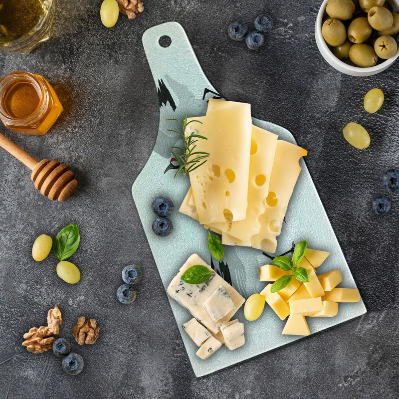- Size - Cutting area: 8" X 7.5", Handle: 6" - Thickness: 1/8 inch. For cutting and serving food.