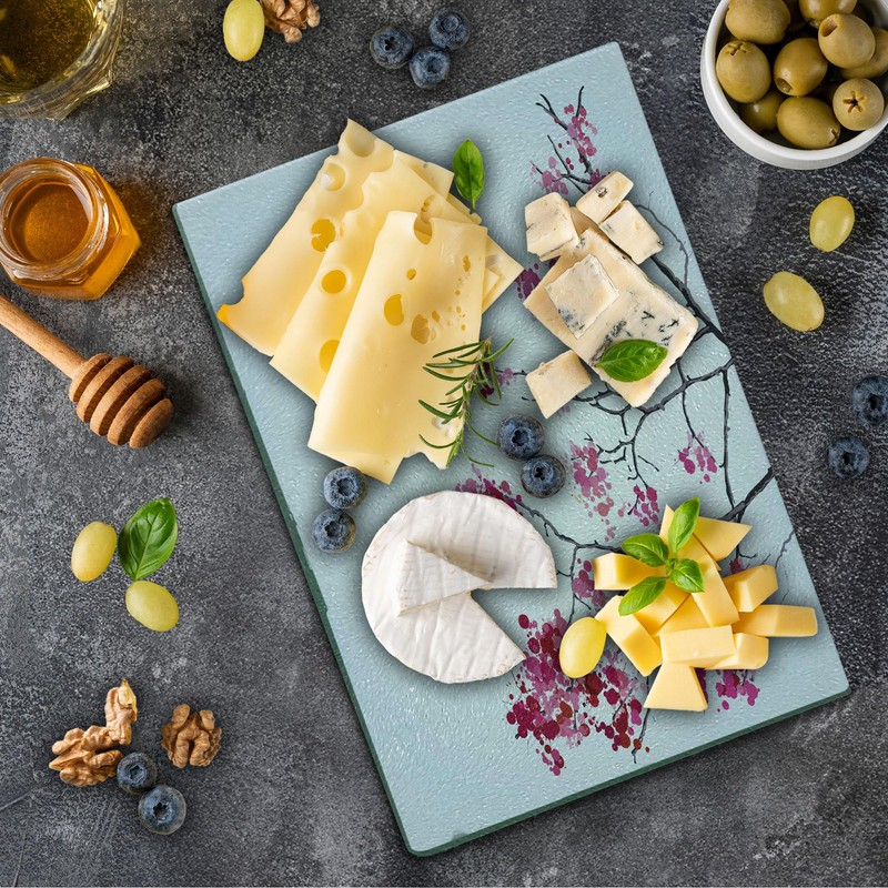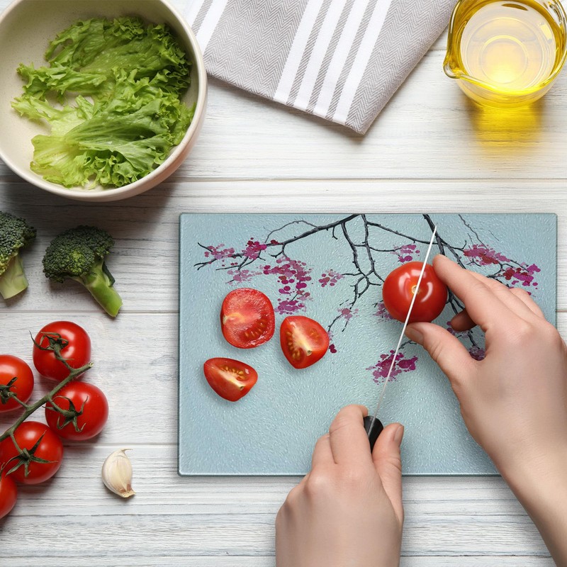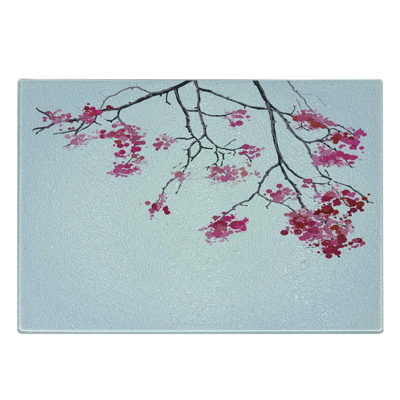 Lunarable Japanese Cutting Board, Cherry Blossom Sakura Tree Floral Branch Spring Season Theme Image, Decorative Tempered Glass Cutting and Serving Board, Small Size, Dimgray Black