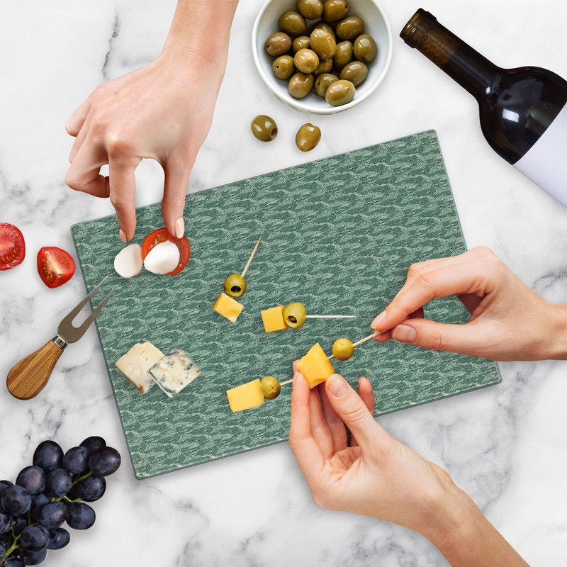 - 7 3/4" x 10 7/8" - Thickness: 1/8 inch. For cutting and serving food, fruits, vegetables, and cheeses.