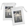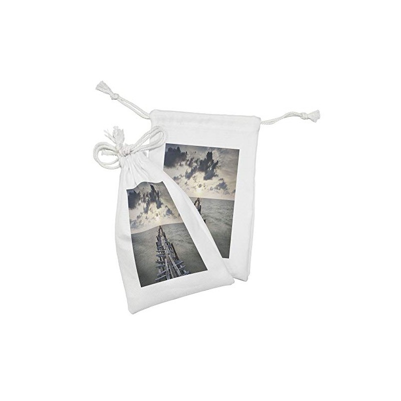 Lunarable Landscape Fabric Pouch Set of 2, Old Wood Bridge Sea Dark Clouds over Evening Sky Nature Sunset View Seascape, Small Drawstring Bag for Toiletries Masks and Favors, 9" x 6", Charcoal Grey