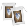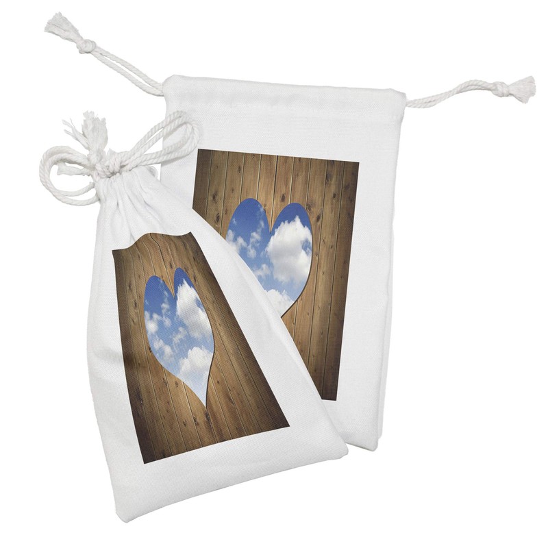 Lunarable Love Fabric Pouch Set of 2, Wooden Door with Heart Clouds in the Summer Sky Board Shutter Old Fashioned Style, Small Drawstring Bag for Toiletries Masks and Favors, 9" x 6", Caramel Blue