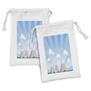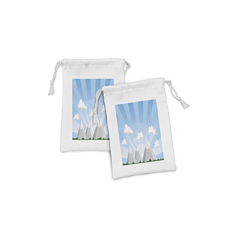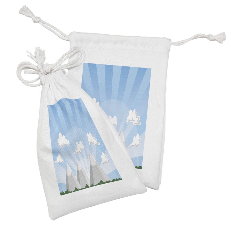 Lunarable Low Poly Mountain Fabric Pouch Set of 2, Cartoon Hills and Clouds on Retro Rays, Small Drawstring Bag for Toiletries Masks and Favors, 9" x 6", Sky Blue Taupe