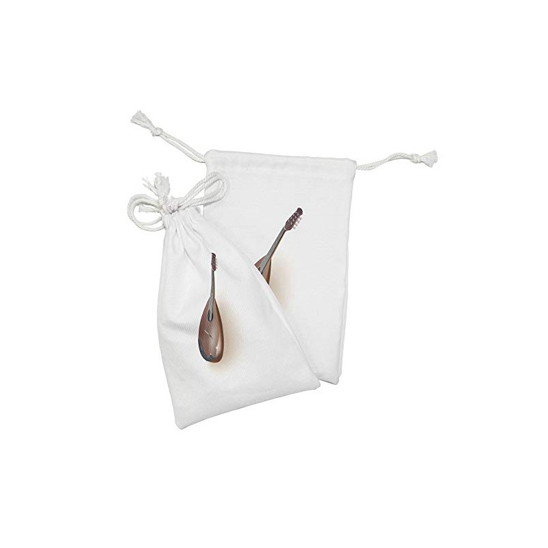 Lunarable Mandoline Fabric Pouch Set of 2, Traditional Neapolitan Mandoline Illustration European Music and Culture, Small Drawstring Bag for Toiletries Masks and Favors, 9" x 6", Brown and Black