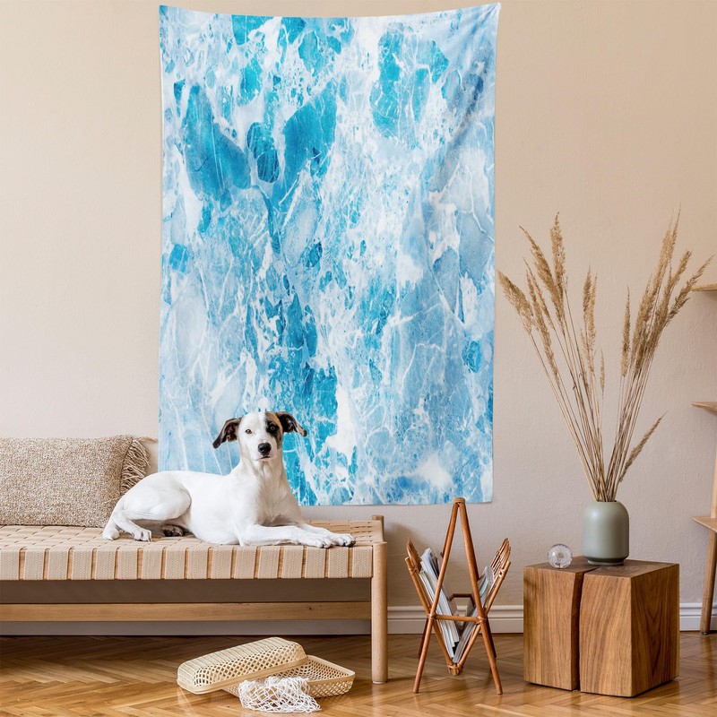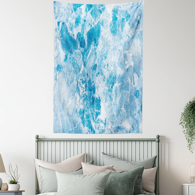 Lunarable Marble Print Tapestry, Shady Rock Surface Pattern in Hand Drawn Style Ink Marbling Background, Fabric Wall Hanging Decor for Bedroom Living Room Dorm, 23" X 28", Blue