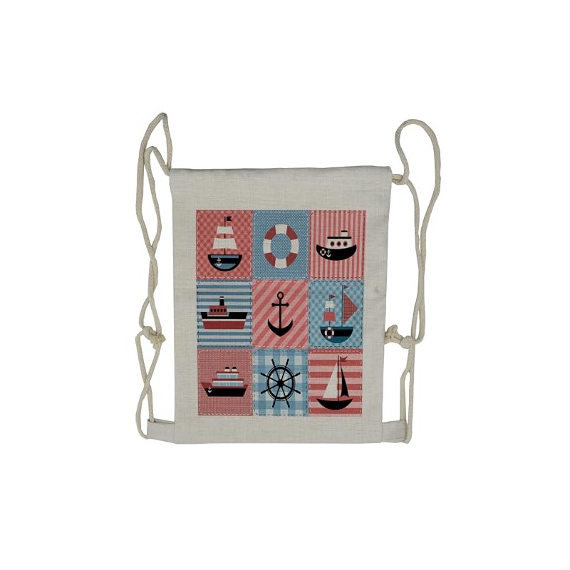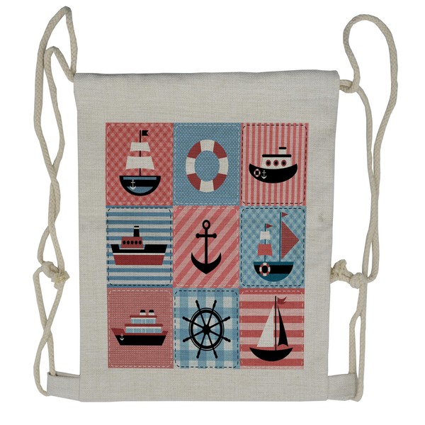Lunarable Marine Drawstring Backpack, Sailboat and Ship, Sackpack Bag