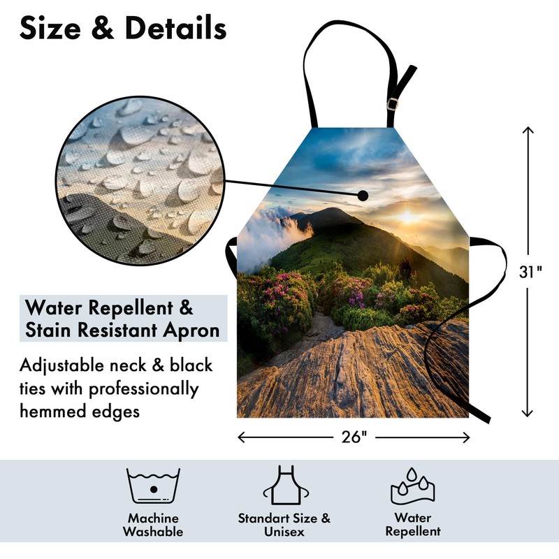 Lunarable Misty Mountains Apron, Photo of Spring Flowers Appalachian Trail at Sunset in Blue Ridge Mountains, Unisex Kitchen Bib Apron with Adjustable Neck for Cooking Baking Gardening, Multicolor
