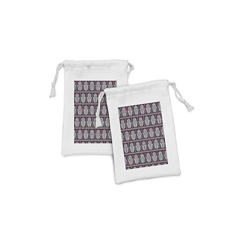Lunarable Mystic Fabric Pouch Set of 2, Bohemian Pattern of Floral Hamsa Hand with Triangles, Small Drawstring Bag for Toiletries Masks and Favors, 9" x 6", Dark Mauve Blush