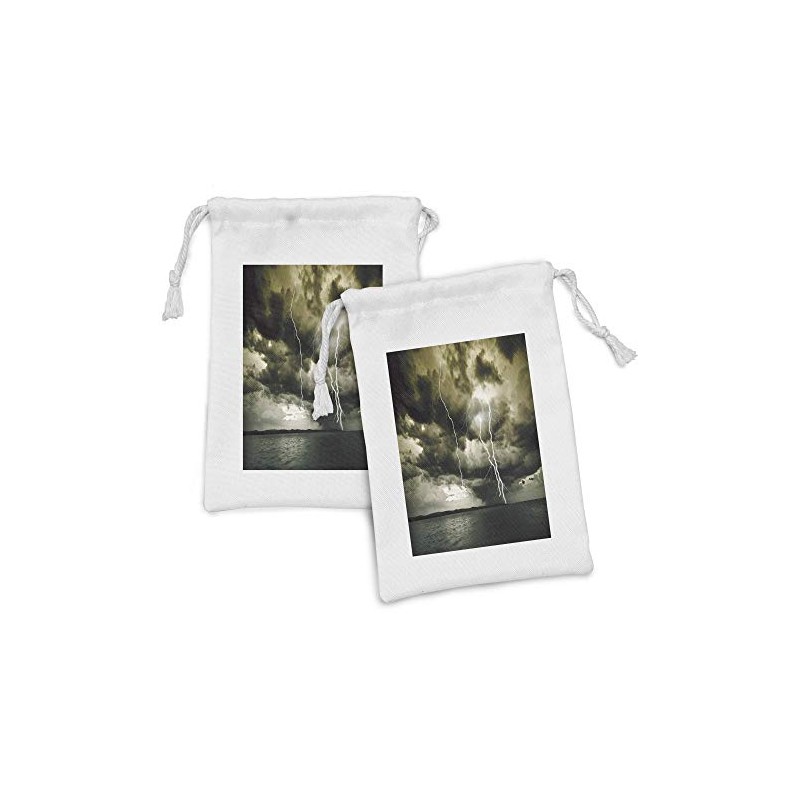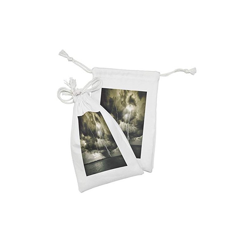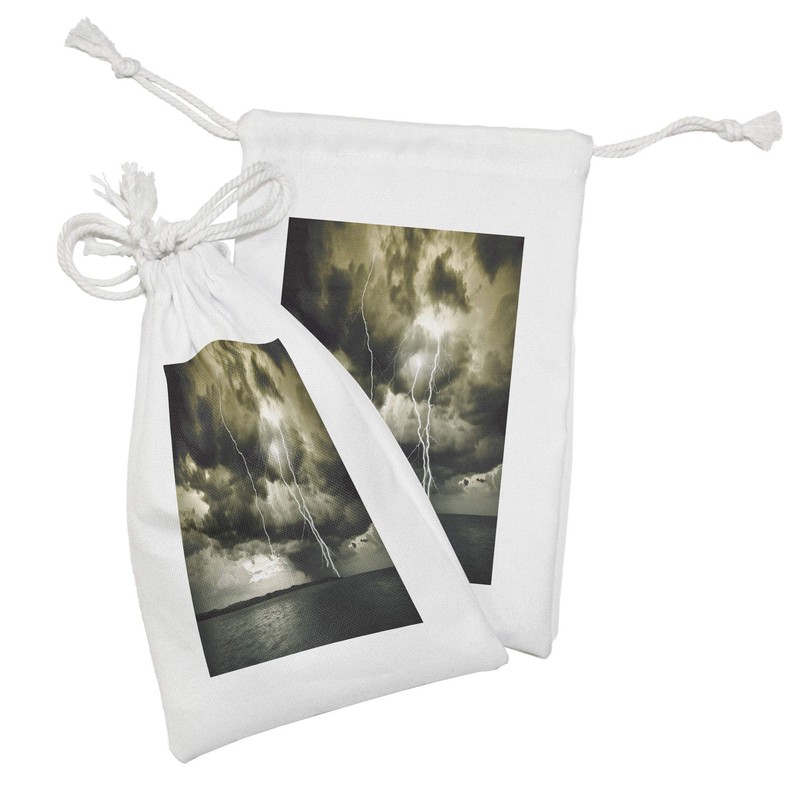 Lunarable Nature Fabric Pouch Set of 2, Majestic Rain Cloud with a Thunderstorm All over the Ocean Sea Dramatic Scenery, Small Drawstring Bag for Toiletries Masks and Favors, 9" x 6", Grey Blue