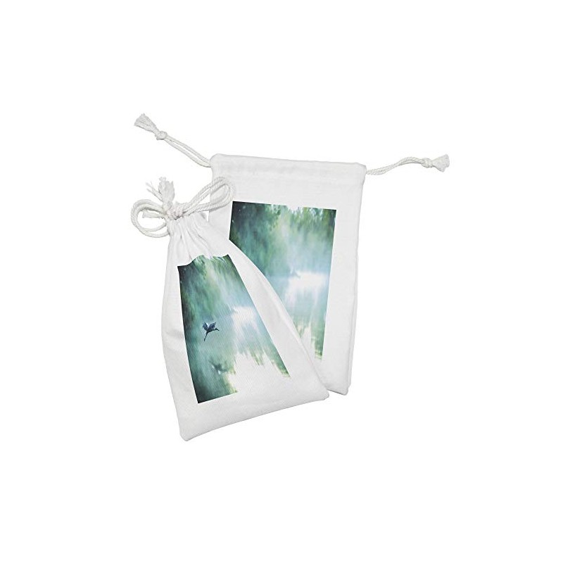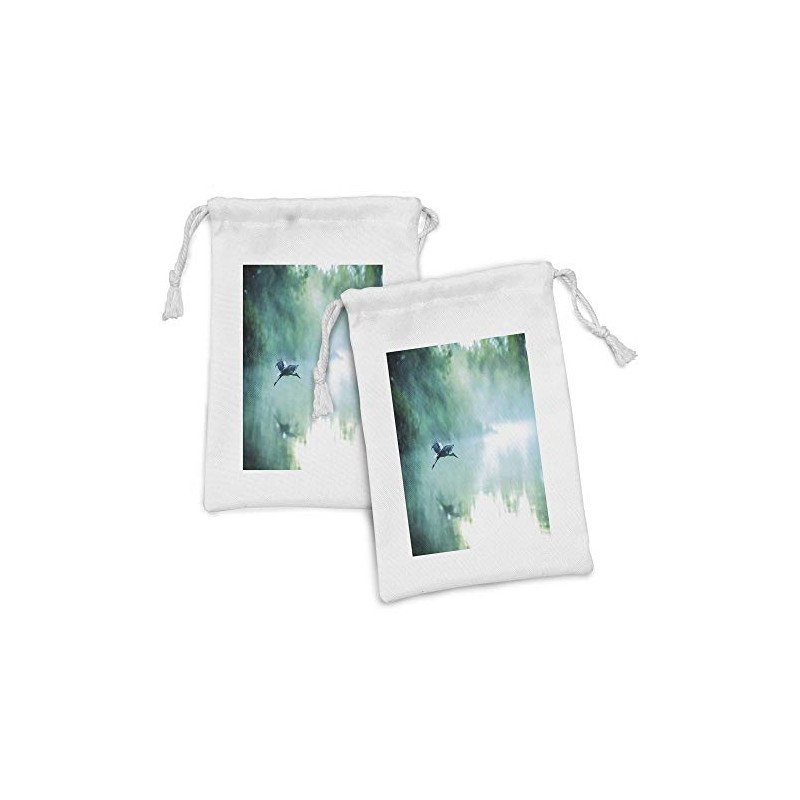 Lunarable Nature Fabric Pouch Set of 2, Seagull in Foggy Sky Among Clouds Flying Vivid Misty Freedom Theme Image, Small Drawstring Bag for Toiletries Masks and Favors, 9" x 6", Turquoise Teal