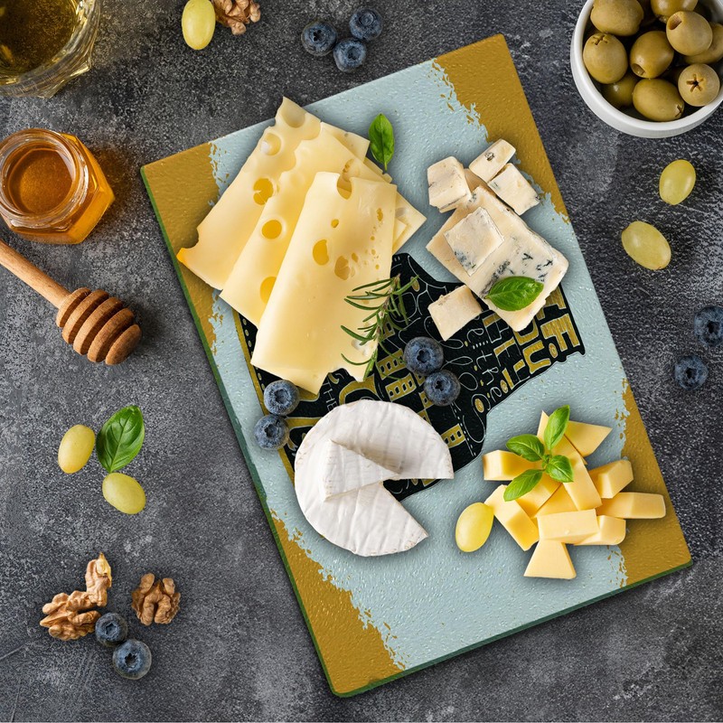 - 7 3/4" x 10 7/8" - Thickness: 1/8 inch. For cutting and serving food, fruits, vegetables, and cheeses.
