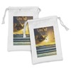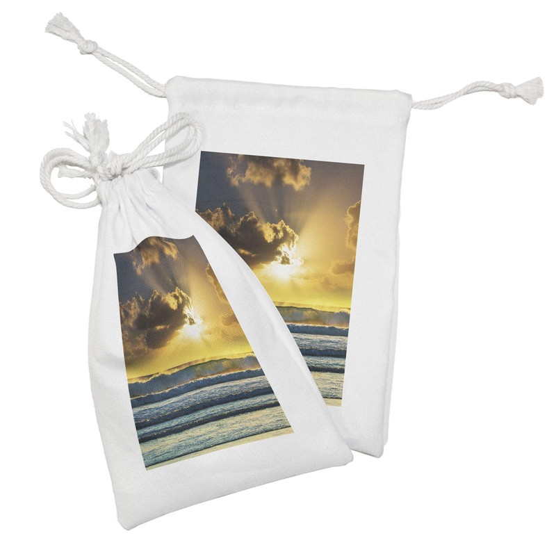Lunarable Ocean Fabric Pouch Set of 2, Sunbeams Grey Clouds Waves of the Sea at a Sunset at Lofoten Norway Picture, Small Drawstring Bag for Toiletries Masks and Favors, 9" x 6", Blue and Yellow
