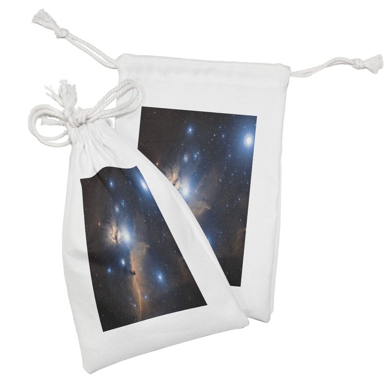 Lunarable Outer Space Fabric Pouch Set of 2, Nebula Gas Clouds in the Outer Space Image Celestial Mystery Dust Cosmos, Small Drawstring Bag for Toiletries Masks and Favors, 9" x 6", Navy
