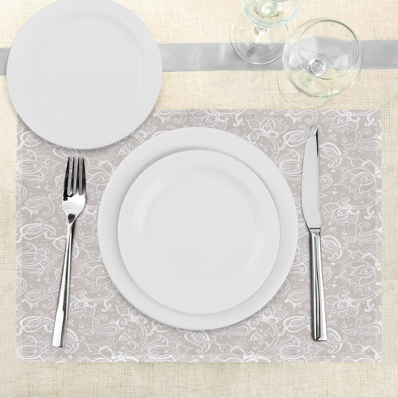 Lunarable Paisley Place Mats Set of 4, Monochrome Little Hearts and Flower Pattern Soft Tones Swirls Print, Washable Fabric Placemats for Dining Table, Standard Size, White