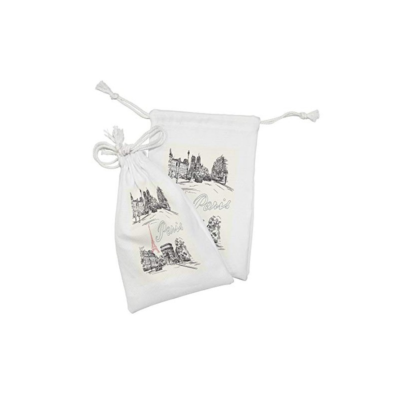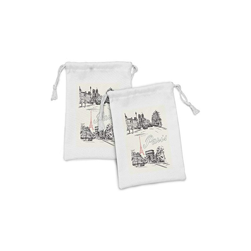 Lunarable Paris Fabric Pouch Set of 2, Arch of Triumph Restaurant Monument Old Fashioned Paris Street Sketch Style Art, Small Drawstring Bag for Toiletries Masks and Favors, 9" x 6", Black Cream Red