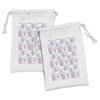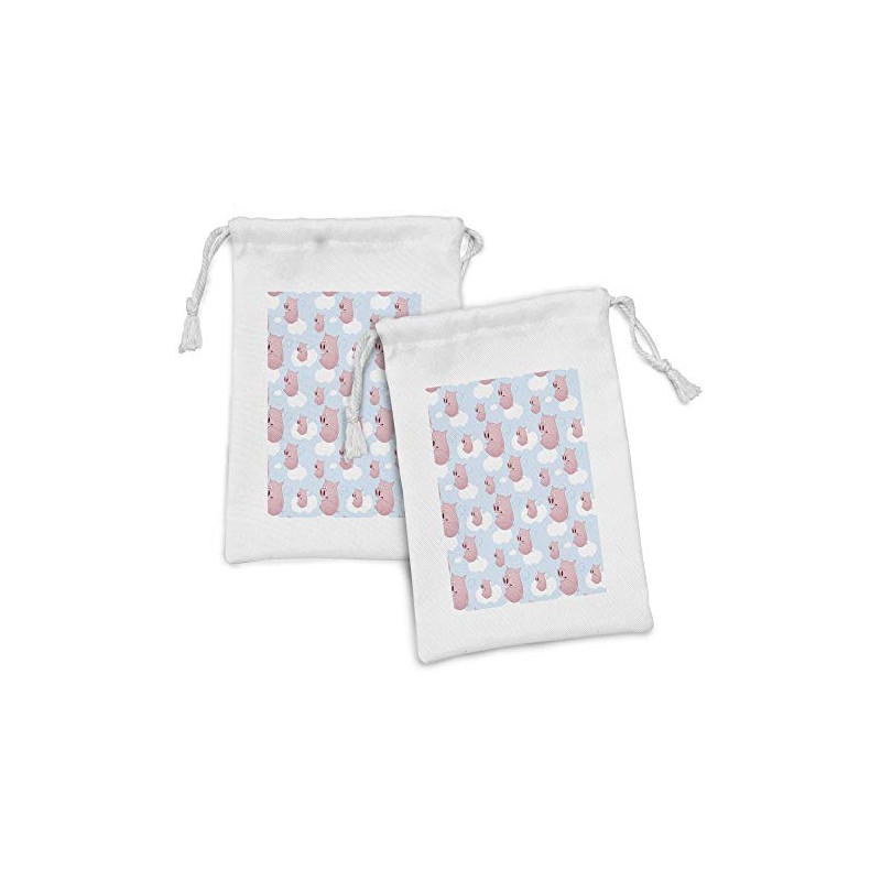 Lunarable Pig Fabric Pouch Set of 2, Frightened Cartoon Style Pigs Flying Clouds Across Open Sky Design Pattern, Small Drawstring Bag for Toiletries Masks and Favors, 9" x 6", Pale Blue White Pink