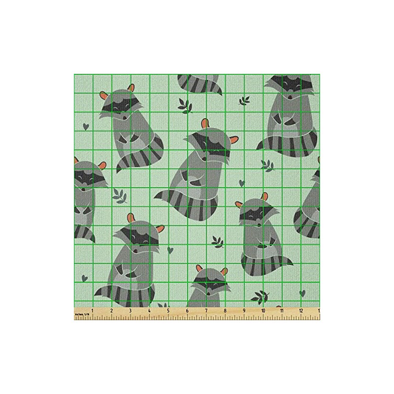 Lunarable Raccoon Fabric by The Yard, Funny Animal Pattern with Minimal Botanical Details Woodland Joy Print, Stretch Knit Fabric for Clothing Sewing and Arts Crafts, 3 Yards, Almond Green and Grey