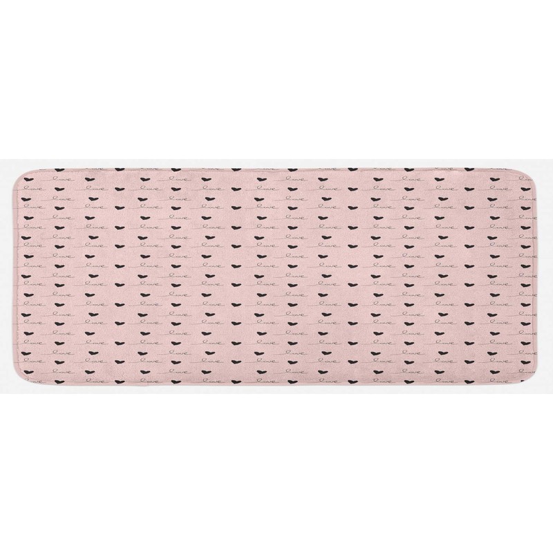 Lunarable Romantic Kitchen Mat, Love Lettering Heart Shapes Simple and Pastel Valentines Day Theme, Plush Decorative Kitchen Mat with Non Slip Backing, 47" X 19", Rose and Charcoal Grey