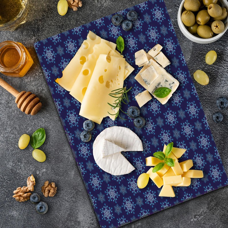 Lunarable Snowflake Cutting Board, Christmas Theme Pattern of Icy Winter Snow Jolly Illustration, Decorative Tempered Glass Cutting and Serving Board, Large Size, Deep Sky Blue and Dark Purple