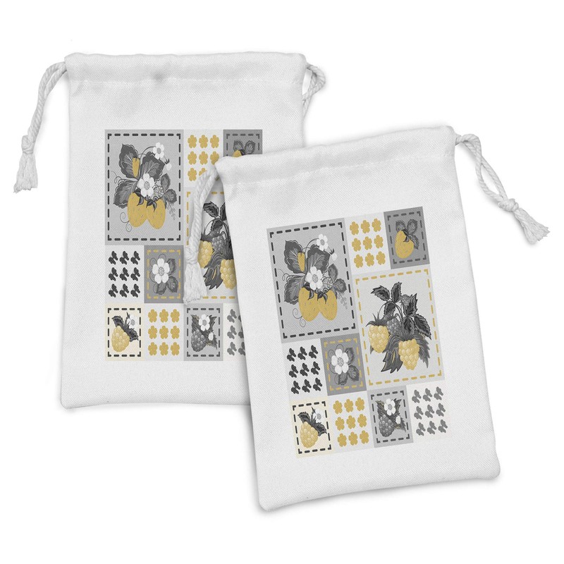 Lunarable Summer Fabric Pouch Set of 2, Grungy Design with Dead Fruit Image with Strawberries and Raspberries Fresh Ripe, Small Drawstring Bag for Toiletries Masks and Favors, 9" x 6", Grey Yellow