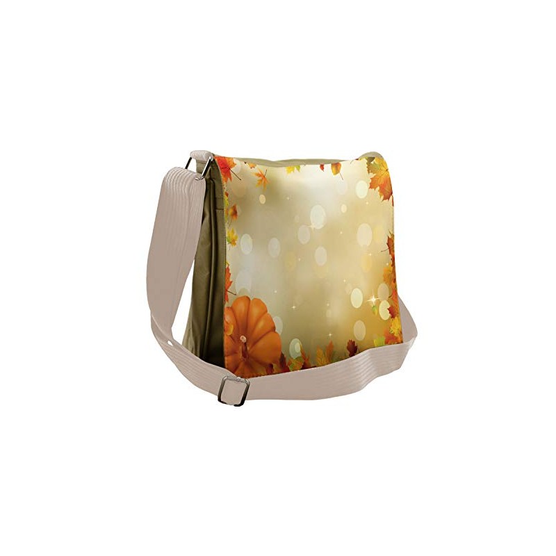 Lunarable Thanksgiving Messenger Bag, Maple Leaves Bokeh, Unisex Cross-body