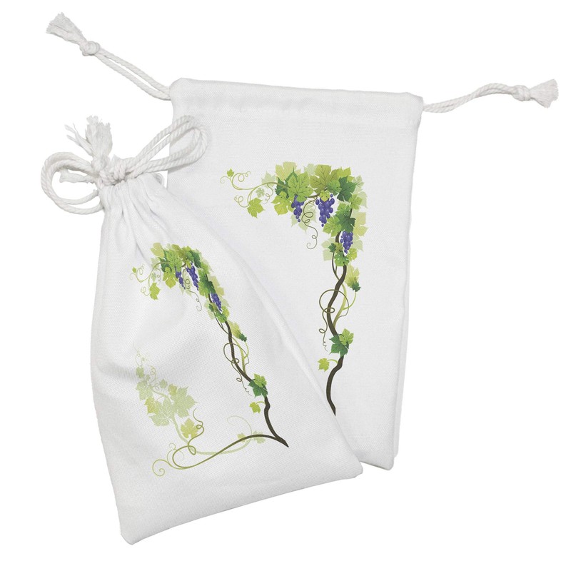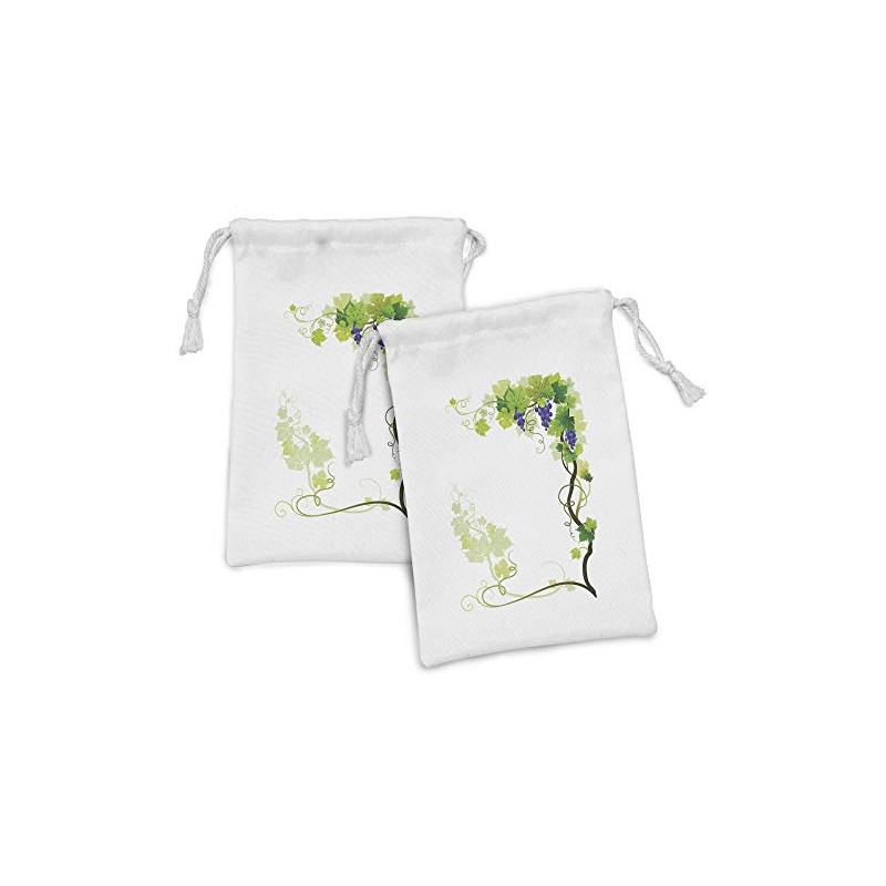 Lunarable Vineyard Fabric Pouch Set of 2, Vineyard Frame with Swirled Curled Fresh Cluster Gardening Plants Design, Small Drawstring Bag for Toiletries Masks and Favors, 9" x 6", Purple Green