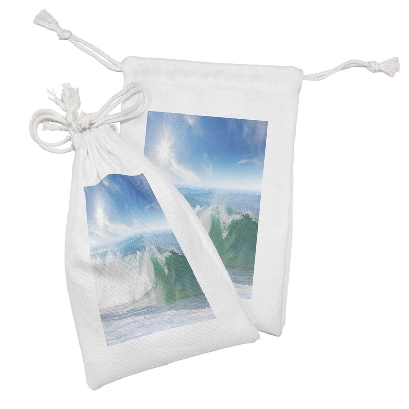 Lunarable Wave Fabric Pouch Set of 2, Summer Vacation Theme Seascape with Wave and Clear Sky Travel Surf, Small Drawstring Bag for Toiletries Masks and Favors, 9" x 6", Fern Green Pale Blue