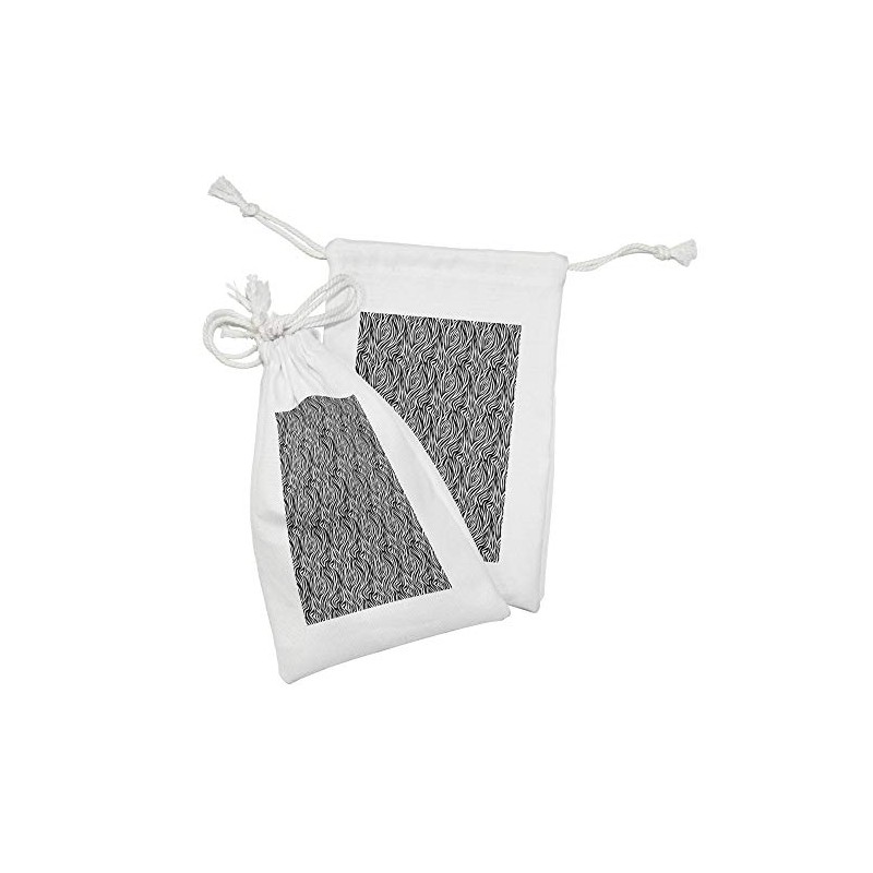 Lunarable White Fabric Pouch Set of 2, Monochrome Abstract Pattern of Zebra Inspired Stripes Animal Print Art, Small Drawstring Bag for Toiletries Masks and Favors, 9" x 6", Charcoal Grey and White