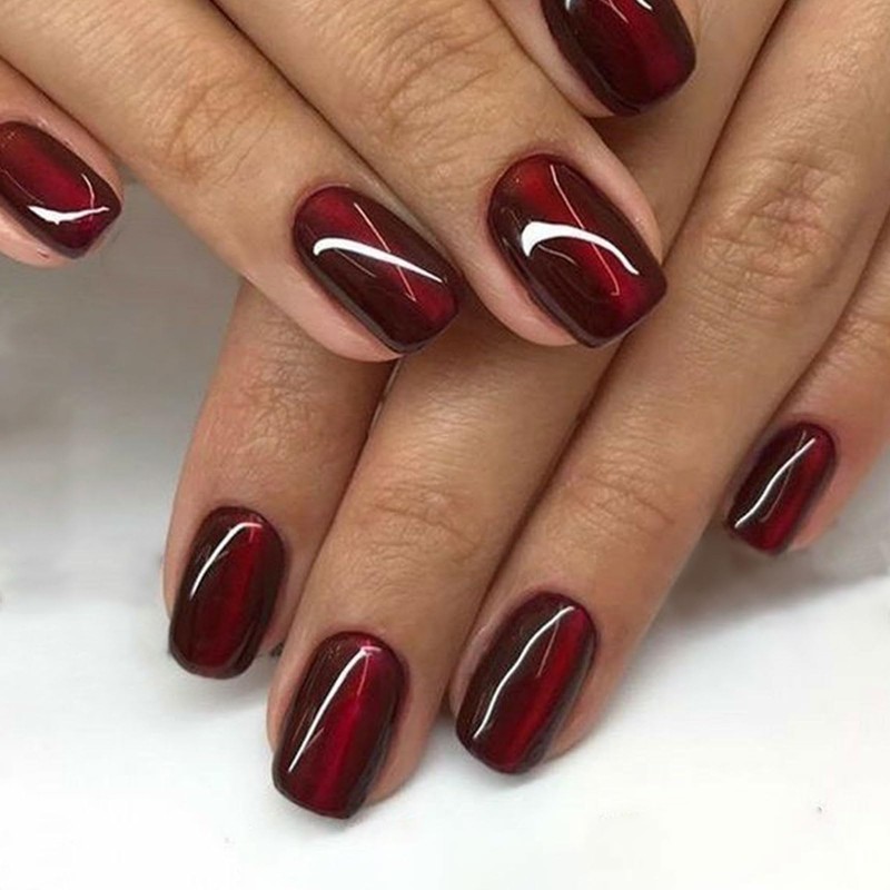 LunarCharm 24 Stück Dunkelrote Press-on-Nägel im Katzenaugen-Stil kurz quadratisch glänzend künstliche Nägel zum Aufdrücken glitzernde Acrylnägel