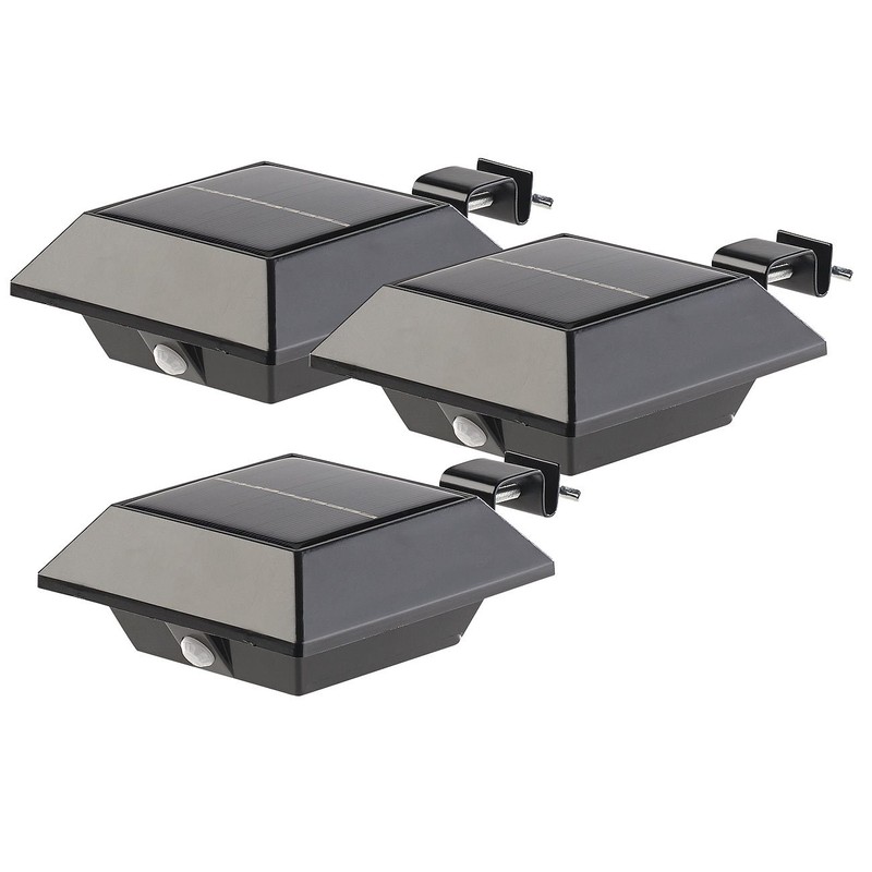 Lunartec Solar LED Gutter Light 160LM 2W PIR Sensor Black Set of 3