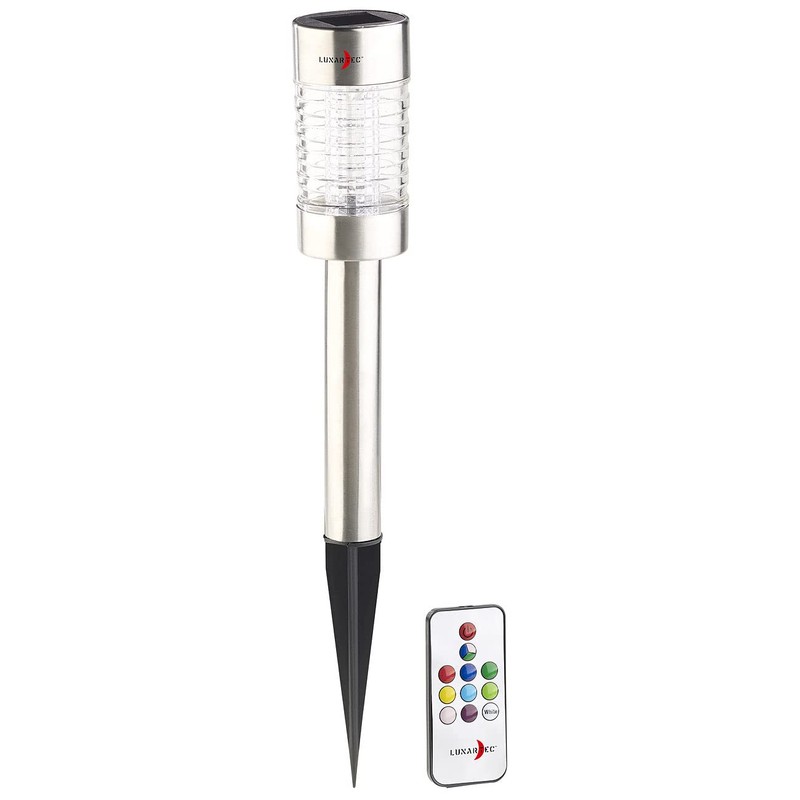 Lunartec Solar RGB LED Path Light Sensor Remote Control Stainless Steel IP44